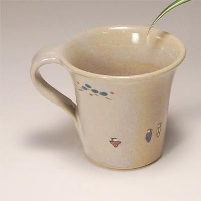 素朴で独特な奈良絵が描かれた赤膚焼のマグカップは心を落ち着かせてくれます。